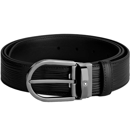 Черный кожаный ремень с подковообразной пряжкой 35мм от магазина премиальных ручек Premium Pens в Стерлитамаке.